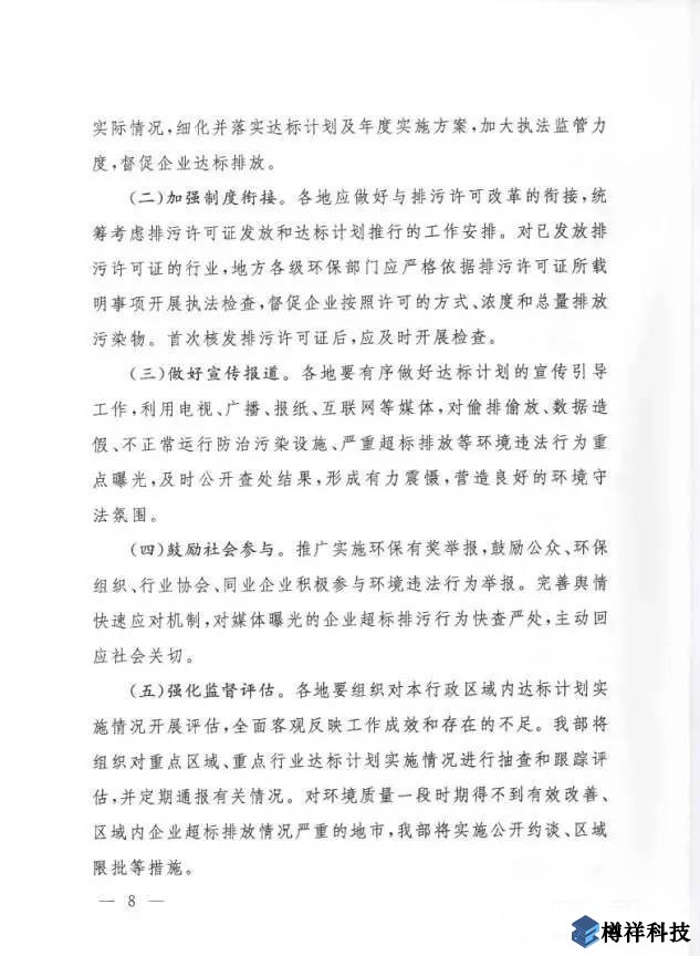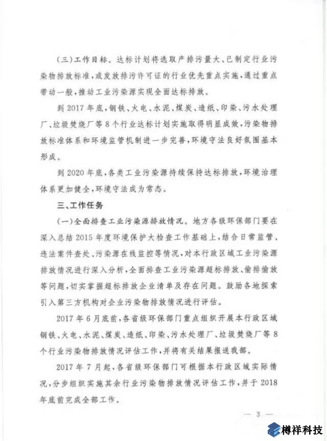 環(huán)境保護部日前發(fā)布《關于實施工業(yè)污染源全面達標排放計劃的通知》(以下簡稱《通知》),要求到2017年底,鋼鐵、火電、水泥、煤炭、造紙、印染、污水處理廠、垃圾焚燒廠等8個行業(yè)達標計劃實施取得明顯成效,污染物排放標準體系和環(huán)境監(jiān)管機制進一步完善,環(huán)境守法良好氛圍基本形成。到2020年底,各類工業(yè)污染源持續(xù)保持達標排放,環(huán)境治理體系更加健全,環(huán)境守法成為常態(tài)。