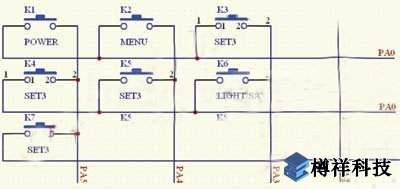 由于ST20P18的I/O口有限,故在鍵盤電路中采用掃描的方式來實現。該電路的實現方式如圖2所示。其工作的基本原理是:單片機初始化后先設置 PA0至PA5、6個I/O口均為輸入方式。