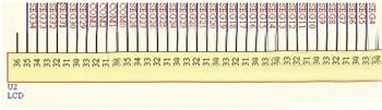 本設計采用的ST20P18單片機,其內核中自帶控制/驅動液晶模塊,該LCD(圖3)顯示模塊是8×40點陣,常用于遙控設備的液晶顯示。液晶顯示的主要控制引腳為COM0~COM7。本設計只用到COM0~COM3。