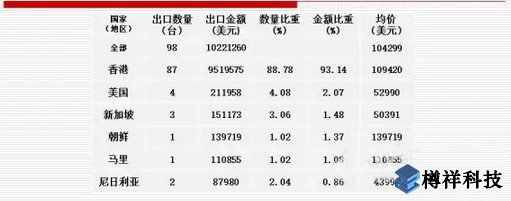 其中:美***是進口數量***多、進口金額******的******(進口1006臺、11193.00萬美元,均價111262美元),新加坡的進口數量和進口金額均列第二(進口580臺、9992.04萬美元,均價172276美元);上海市的進口數量***多(進口502臺、同比上升30.73%,均價101116美元),北京市的進口金額******(進口7019.12萬美元、同比上升54.90%,均價191257美元)。